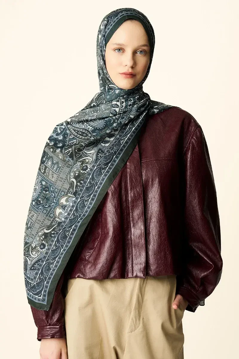 Yekta Desenli Pamuk Dokulu Şal - Haki
