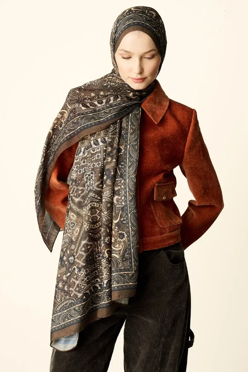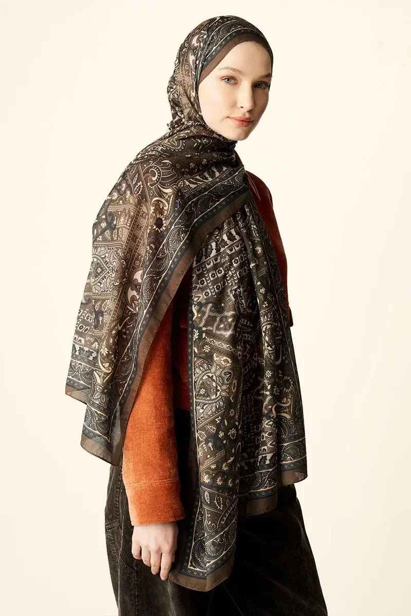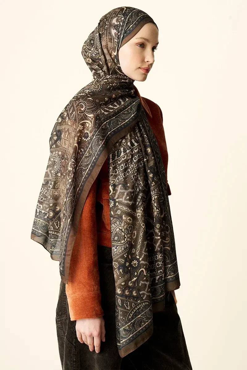 Yekta Desenli Pamuk Dokulu Şal - Kahverengi